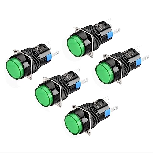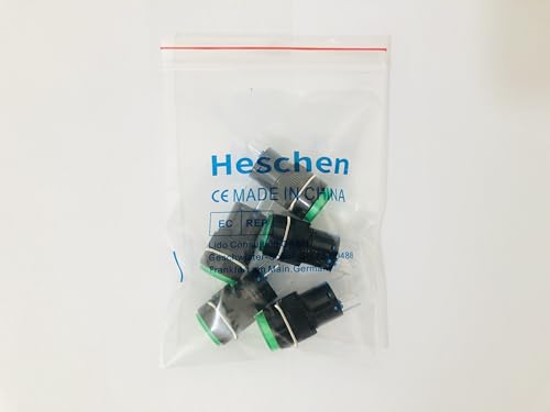 Heschen, interruttore momentaneo rotondo da 16 mm, 1 NO, 1 NC, 24 V, lampada LED, confezione da 5, Green, 5
