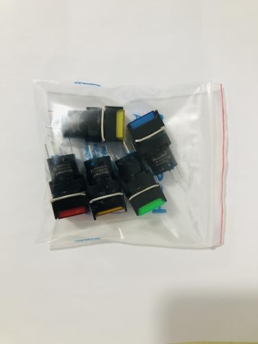 Heschen - Interruttore a pulsante quadrato da 16 mm, 1NO 1 NC, rosso, blu, giallo, verde, arancione, 24 V
