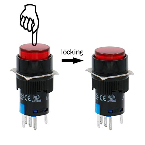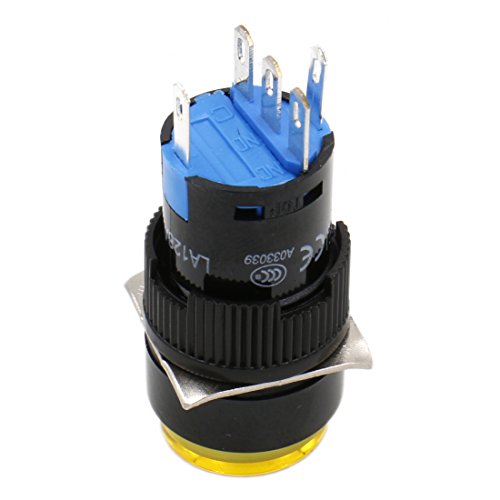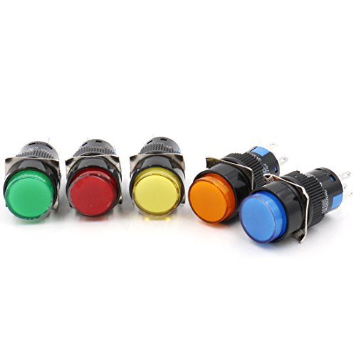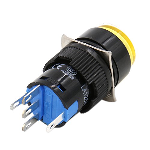 Heschen Interruttore a pulsante rotondo da 16 mm, tipo di chiusura, 1NO 1NC, rosso verde arancione blu giallo, lampada a LED da 24 V