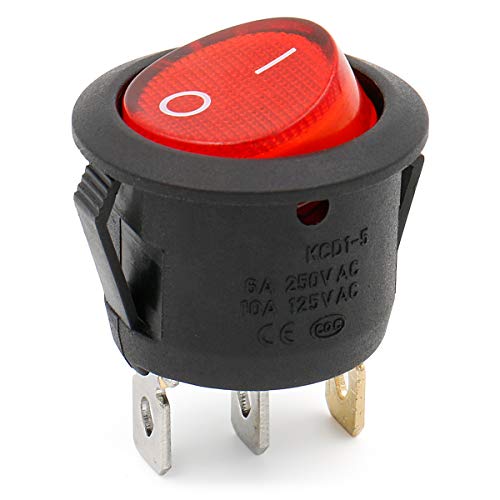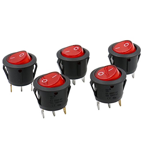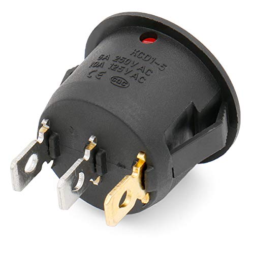 Heschen - Interruttore rotondo, acceso/spento, SPST, 3 terminali con luce rossa, 16 A, 250 V CA. Confezione da nr.5 pezzi.