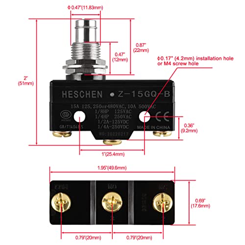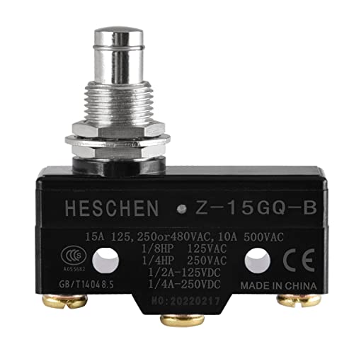 Heschen Microinterruttore per uso generico Z-15GQ-B, stantuffo per montaggio a pannello, OP medio, 3 morsetti a vite, corrente nominale 15A