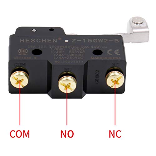 Heschen Microinterruttore, Z-15GW2-B, leva a rullo a cerniera, 3 terminali a vite, distanza tra i contatti 0,5 mm, corrente nominale 15A