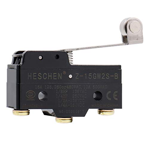 Heschen Microinterruttore Z-15GW2S-B Leva con rotella a cerniera in acciaio inossidabile 3 Terminale a vite 0,5 mm Distanza tra i contatti 15 A Corrente nominale