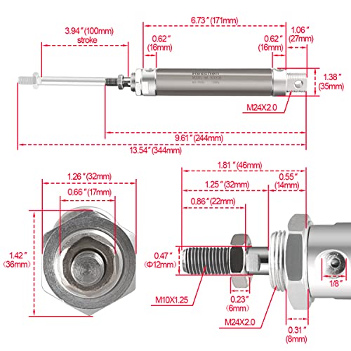 Heschen - Mini cilindro pneumatico in acciaio inox MA 32 × 100, foro 32 mm, corsa 100 mm, canna singola a doppia azione