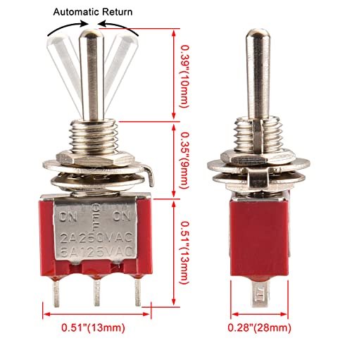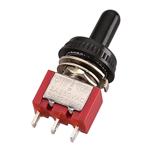 Heschen MTS-123 - Mini interruttore a levetta momentaneo (ON)-OFF-(ON) SPDT, 3 pin, 2A 250V, 5A 120V, UR elencato, con copertura impermeabile, confezione da 5