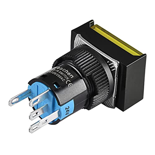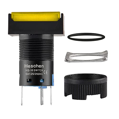 Heschen 16 mm rettangolo interruttore a pulsante momentaneo 1NO 1NC 5Pin 24V LED lampada 5 Pack (giallo)