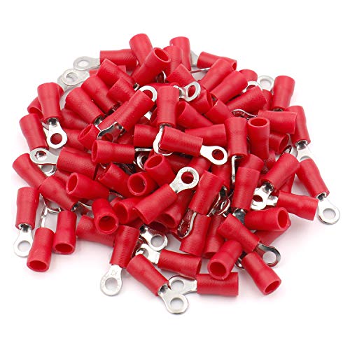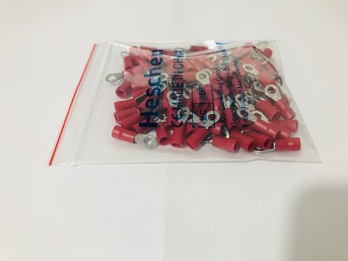 Heschen Ring Terminals Vinyl Insulated electrical Crimp Connectors 22 - 16 AWG (0.5 - 1.5 MM2) STUDE Size # 4, D2 = 3.2 mm(0.126"), rete, Pack of 100