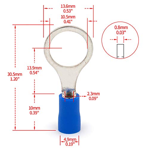 Heschen RV2-10S - Connettore elettrico a crimpare ad anello, in vinile, con connettore a crimpare, misura 3/8", per 1,5-2,5 mm² (16-14 AWG) blu, confezione da 100
