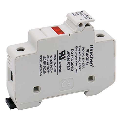 Heschen Supporto per fusibili cilindrici Base RT18-32(X) 32A AC690V 1 palo DIN Montaggio su guida per RT18 RO15 10 x 38mm Fusibile CE UL Listed