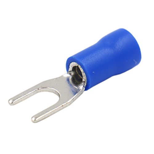 Heschen Terminale a crimpare elettrico per connettore a filo isolato a forcella, SV2-4, Dimensione borchia #8, per 1,5-2,5 mm² (16-14 AWG), blu, confezione da 100