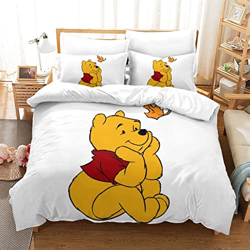 HESHS Winnie The Pooh Biancheria Set Copripiumino Stampa 3D Animation Per Letto Singolo,Matrimoniale,in Microfibra Di Poliestere Per Adulti E Bambini Double(200x200cm)