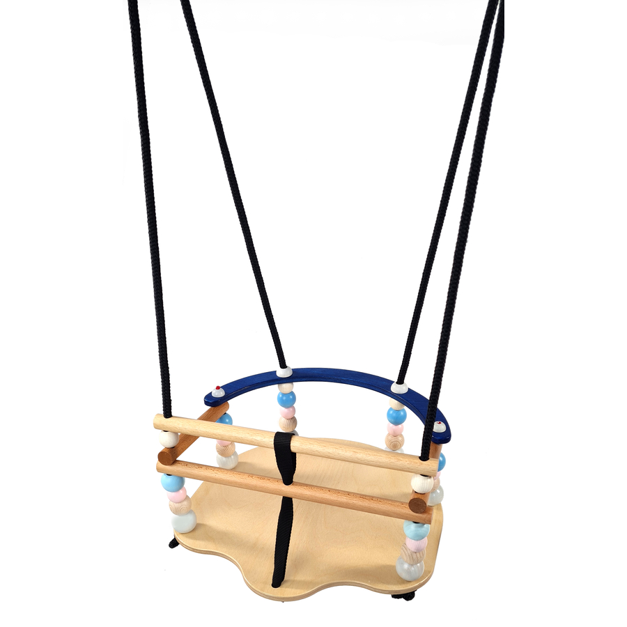 Legno Dimensioni seduta: ca. 32 cm Lunghezza massima: ca. 1,5 m Fune in fibra sintetica con due anelli metallici per il fissaggio Facile da appendere al telaio dell'altalena o a un albero Età: da 12 mesi Attenzione ! Controllare regolarmente tutte le parti di supporto di questa altalena per bambini (sospensione, fissaggio, ancoraggio). I ganci in cui si aggancia l'altalena devono essere progettati in modo tale da evitare il distacco accidentale (ad es. girandoli di almeno 540° o utilizzandoli come ganci a molla).