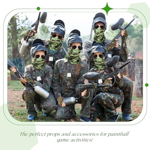 Affidabile da usare: il cappello del militare per costume è in cotone, leggero e comodo da indossare, e gli occhiali da sole sono realizzati con montatura in PC e lenti in resina, comodi da indossare a lungo, e la piastrina per cani è in metallo, il collo la copertura è realizzata in materiale seta di ghiaccio, i guanti mezze dita mimetici sono realizzati in tessuto elastico per scale, gancio e anello e tappetino in spugna, sono elastici, morbidi e traspiranti e il design antiscivolo per sport