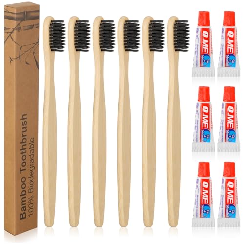 Combinazione premurosa: riceverai 6 spazzolini da denti in bambù con setole nere, dotati di 6 mini dentifrici, la quantità dello spazzolino in bambù è sufficiente per soddisfare le tue esigenze quotidiane di utilizzo e sostituzione, inoltre puoi essere condiviso con i tuoi amici e familiari durante il viaggio