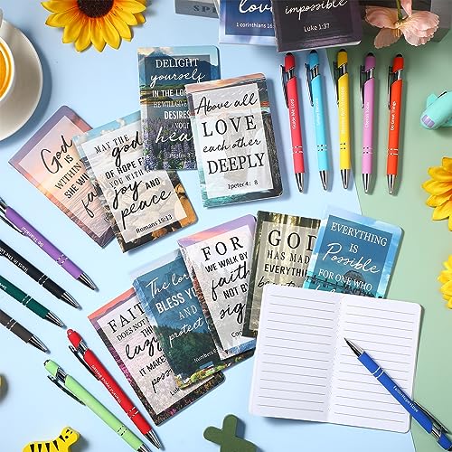 Cosa otterrai: riceverai 24 pezzi di set di quadernini con versi della Bibbia e penne, inclusi 12 pezzi di mini taccuini motivazionali cristiani e 12 pezzi di penne a sfera touch screen in 12 stili diversi, quantità sufficiente e vari stili per soddisfare le tue diverse esigenze e sostituzione, puoi anche condividerli con il tuo amico