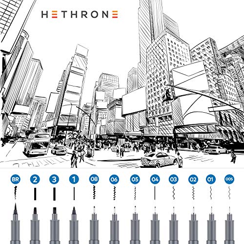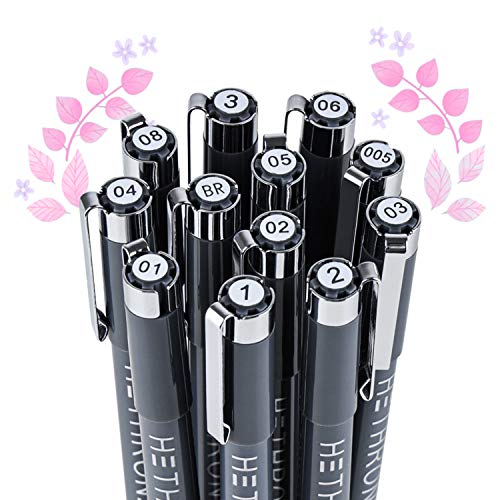 Hethrone Penne per scrivere a mano, penne calligrafiche e set di calligrafia nera per principianti, Scrittura, Firma, Disegno e Illustrazione (12 dimensioni)