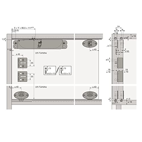 Per altezza porta fino a 1500 mm, larghezza porta: 400 - 2000 mm, profondità porta: 16 - 19 mm