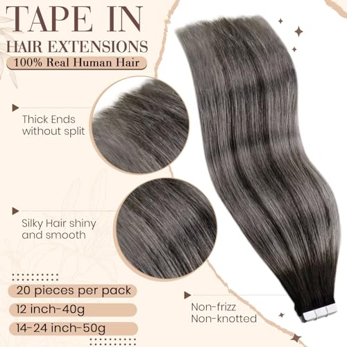 Hetto Biadesive Extension Capelli Naturale Nero A Silver Extension Adesive Capelli Naturale Balayage Bande Biadesive Extension Invisibili Remy Hair 20pcs/50g 16Pouce/40cm