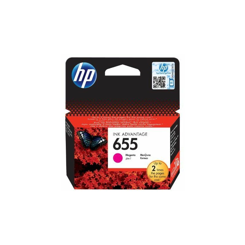 HP 655. Tipo: Originale, Tipo di inchiostro: Inchiostro a base di pigmento, Colori di stampa: Magenta. Larghezza: 107 mm, Profondità: 24 mm, Altezza: 115 mm. Numero di pagine A4 (colore): 600 pagine