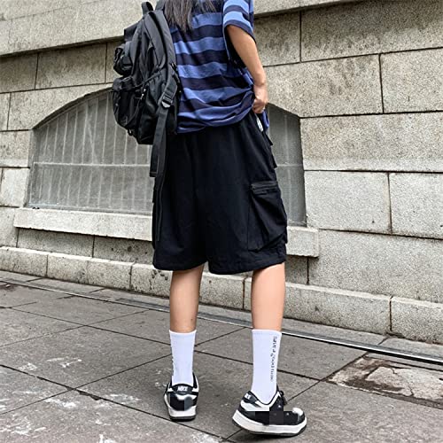 Hewlshawn Pantaloncini Sportivi da Donna Estivi a Vita Alta Pantaloni Cargo da Trekking Larghi Unisex Bermuda Streetwear (Black,M)