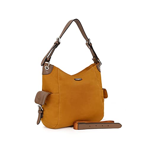 Hexagona Paris Donna-Collezione Joy-Senape-Nylon-1 Manico Regolabile 8 tacche Staccabili-Asciugamano-Satchel Tracolla-Borsa Messenger, Giallo, Taille Unique