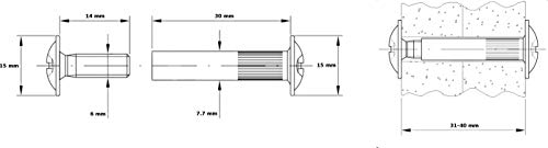 HEXATON Vite di Giunzione Vite per mobili Raccordo a V Collegamento M6 Connettore per armadio, fessura a croce PZ2 e lama piatta M6 x 31 - 40 mm 50 pezzi