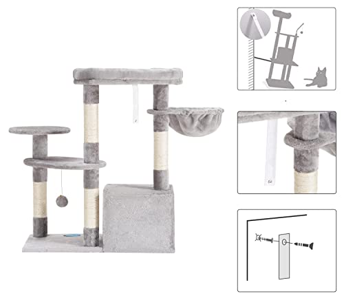 Hey-brother Albero per Gatti con Pali tiragraffi in sisal, Torre per Gatti a più Livelli, Struttura per arrampicarsi con Grande Piattaforma, Grigio Chiaro MPJ001SW