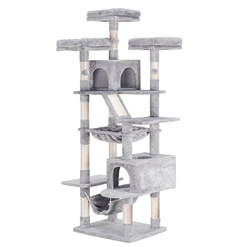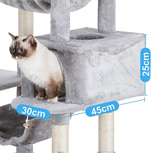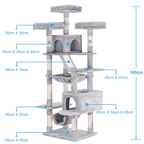 Hey-brother Tiragraffi Alto 185 cm, Stabile Torre per Gatti da Interno, Grande Albero per Gatti con Amaca, Grotta per Gatti XXL, Grigio Chiaro EMPJ030W
