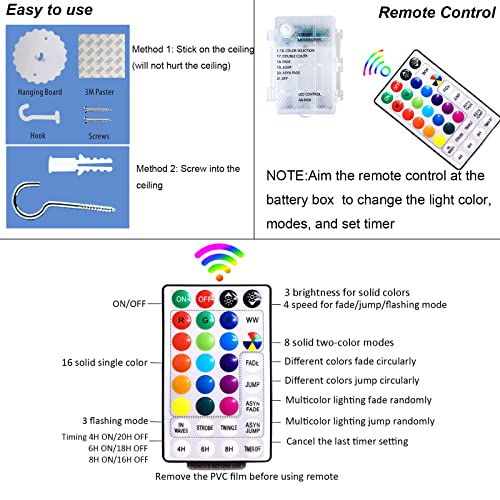 【Controllo remoto del timer】 Le luci della stringa del baldacchino possono essere controllate con il telecomando wireless. Ci sono 18 diverse opzioni di colore e 7 modalità multicolori dinamiche (scintillio e lampeggiante). Dispone inoltre di 3 modalità timer (4 ore di accensione/20 ore di spegnimento, 6 ore di accensione/18 ore di spegnimento, 8 ore di accensione/16 ore di spegnimento). Puoi personalizzare il colore del baldacchino della camera da letto.