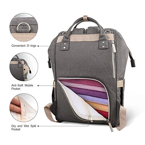 HEYI Borsa Fasciatoio Neonato Zaino Fasciatoio Impermeabile per Pannolini Zaino da Viaggio di Grande Capacità per Mama (Grigio)