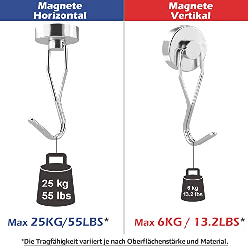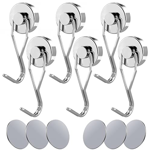 HeYork Ganci magnetici 6 pezzi argento al neodimio magnetico super forti magneti con gancio girevole e girevole per cucina, camera da letto, ufficio, antiruggine, forte forza adesiva max. 25 kg
