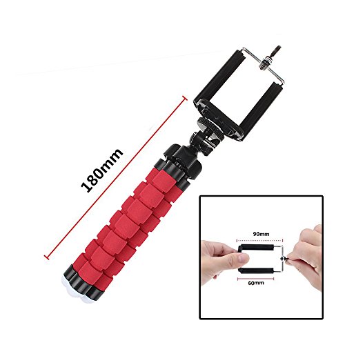 Heyqie(TM) Flexible Octopus Style Portable and Adjustable Mini Tripod for Smartphone, Camera, Webcam with Bluetooth Wireless Remote Shutter for iPhone Samsung and other IOS/Android Phone - Red