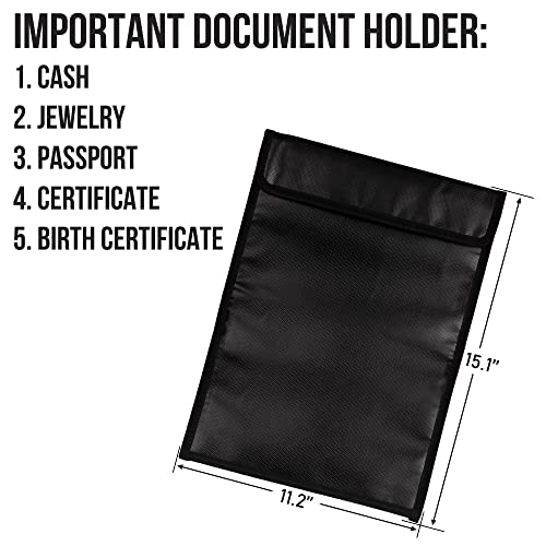 HEYQK Borsa per Documenti Ignifuga Impermeabile Nera da 2 pezzi, 28 * 38 cm, Borsa Ignifuga in silicone rivestito resistente al fuoco (Stile Pieghevole),Chiusura in Cerniera