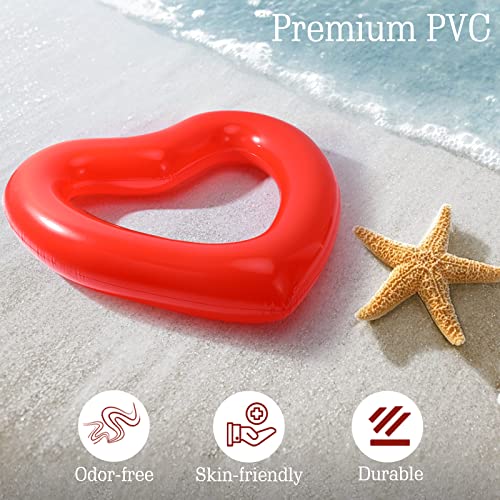 HeySplash Anello di Nuoto, Salvagente Galleggiante ad Anello in Formato Cuore, Galleggiante Gonfiabile della Piscina per Adulti & Bambini 47.3" x 39.4"(120cm x 100cm) - Rosso