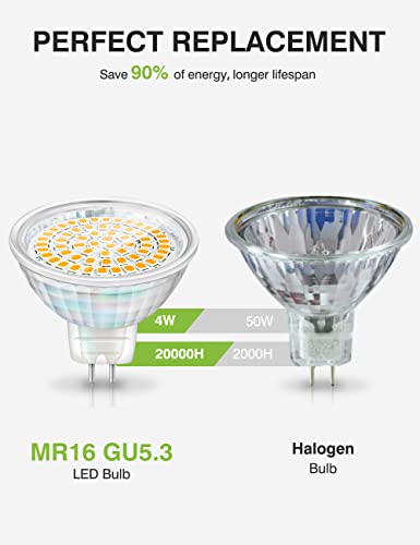 HFCDL Lampadine LED GU5.3, MR16 Faretto a Led 12V, 4W Equivalenti 50W Lampada Alogena, Bianco Caldo 3000K, 12V 460 Lumens Non-dimmerabile, 12 Pezzi