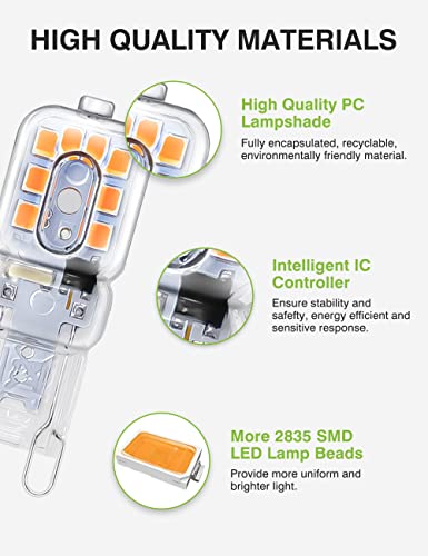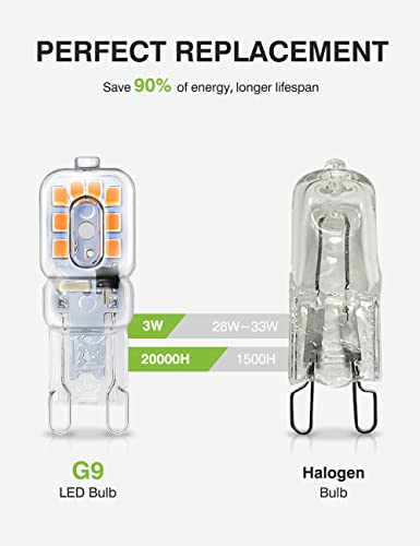 Accogliente illuminazione di sicurezza-La lampada LED G9 non produce radiazioni ultraviolette o altre radiazioni nocive, l'angolo del fascio è di 360°, CRI>90Ra, si verificherà una luce più luminosa e naturale. Luminosità costante di 300 lumen per proteggere i tuoi occhi e creare un'atmosfera confortevole
