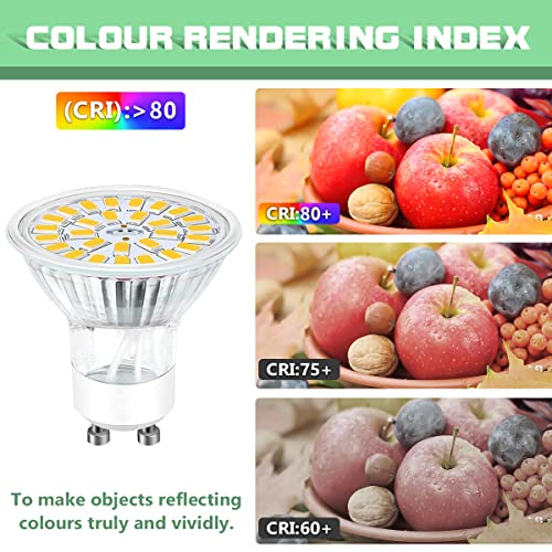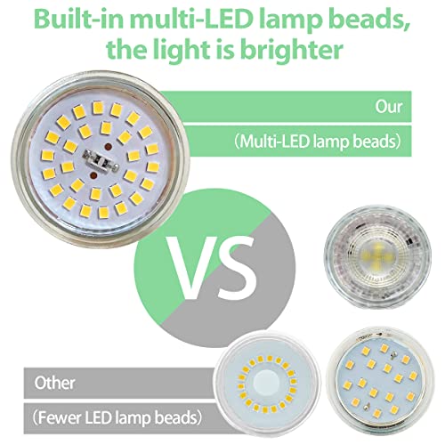 28 perle di luce integrate: Le lampadine HFCDL GU10 LED utilizzano un design a più perle di lampada rispetto ad altri, una potenza media più piccola della singola perla, una più facile dissipazione del calore, una maggiore durata, una disposizione più densa, un punto luce uniforme, nessun sfarfallio.Le lampadine GU10 durano fino a 20000 + ore.