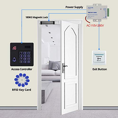 HFeng Kit Sistema Controllo Accesso Impermeabile IP68 Tastiera RFID Esterna + Serratura Magnetica Elettrica 180KG / 350lbs + alimentatore DC12V + 10pcs 125KHz Scheda portachiavi for Home