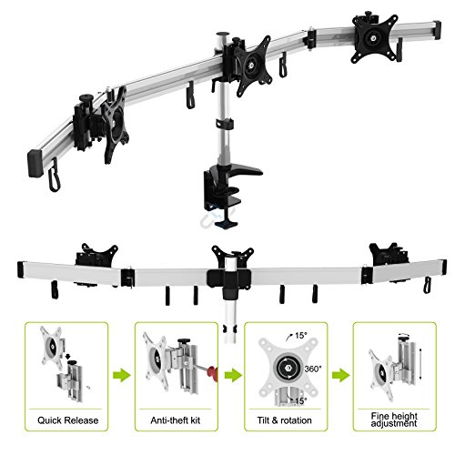 HFTEK - Braccio monitor da scrivania triplo staffa di supporto per 1, 2 o 3 schermi da 15" a 27" con VESA 75/100 (MP230C-L)
