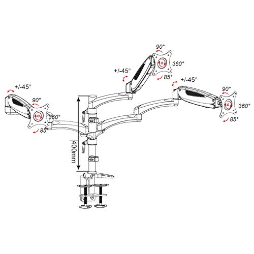 HFTEK - Braccio per Monitor - Triplo - Supporto a Staffa Supporto da Tavolo per 3 Monitor da 15-27 Pollici con VESA 75/100 (GM138DW)