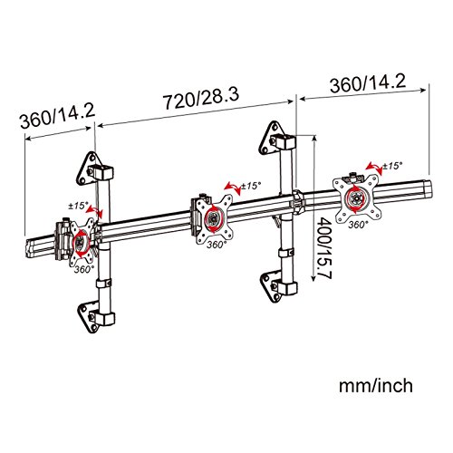HFTEK Supporto da parete a 3 scomparti per 3 schermi da 15-27 pollici (MP230W40-N)