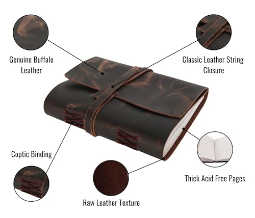 ✔ Charm rustico: la morbida ed elastica pelle di bufalo marrone scuro con finitura invecchiata migliorerà ancora con l'utilizzo, ogni piega e piega sulla copertina racconta una storia unica della tua avventura. Questo diario di personaggi vecchio stile ha una spessa chiusura in pelle che mantiene efficacemente il tuo diario chiuso e funge anche da pratico segnalibro.