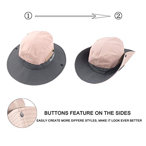 Grande qualità: il tessuto per bambini è morbido, resistente, leggero, impermeabile, ad asciugatura rapida e confortevole. La fascia interna assorbe il sudore in eccesso. Entrambi i lati dei cappelli da pesca sono realizzati con pannelli in rete traspirante che permettono al calore di fuoriuscire e far scorrere l'aria. I bottoni a pressione laterali pieghevoli permettono al bambino di sperimentare diversi stili: stile cappello da cowboy e stile cappello a tesa piatta.