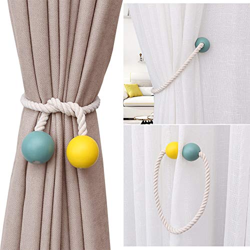 Hggzeg - Ferma-tende magnetici per tende, in legno, per casa, ufficio, finestra dell'hotel (blu + giallo), 2 pezzi