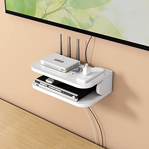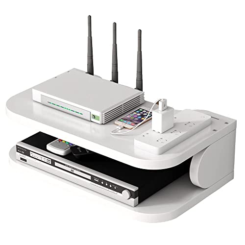 Hggzeg Scatola portaoggetti per Router WiFi Ripiani galleggianti Rack TV Set-Top, Rack per la Gestione dei Cavi Multistrato Montato a Parete per la Decorazione della Parete(jl01,Bianco)