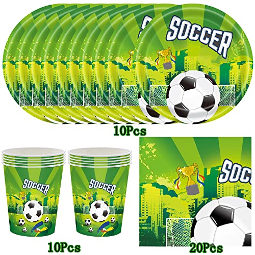 HGSHUO Stoviglie per Feste Calcio Compleanno Decorazioni Stoviglie per Compleanno Piatti Bicchieri di Carta Tovaglioli Calcio Forniture per Feste 10 Ospiti