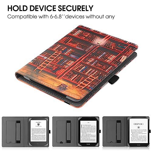 HGWALP Custodia universale per 6-6.8 pollici eReaders, Folio Stand Cover con cinturino compatibile con Kindle Paperwhite/Kobo/Tolino/Pocketook/Sony 6" 6.8" E-Book Reader-Library