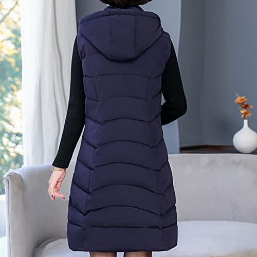 HHMY Gilet da donna lungo, caldo, con cappuccio, leggero, trapuntato, medio e lungo, sottile, per le mezze stagioni, Blu marino, XXXXL