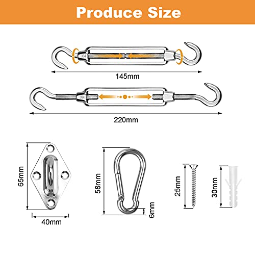 Ampia applicazione: kit hardware a vela tonalità adatta per l'installazione di tonalità triangolari, quadrati e rettangolari a vela da sole a strutture solide come cemento, muratura e travi di legno.