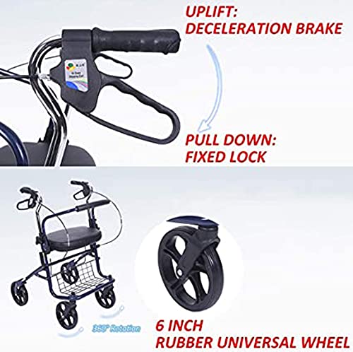 HHORB Deambulatore, Deambulatore Pieghevole in Acciaio Leggero A 4 Ruote con Cuscino E Sedile Reversibili, Ripiano Portaoggetti, Altezza della Maniglia Regolabile, Salvaspazio, Rosso,Blu
